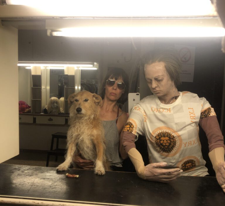 (Mandarine hat ihre erste Bühnenrolle und spielt den Hund von Nathalies Großmutter der an Arthrose leidet mit Bravour 🙂